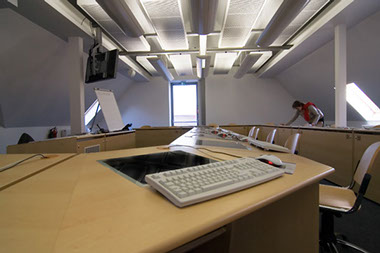 Das Sprachlabor an der Johann Wolfgang Goethe-Universität in Frankfurt am Main ist ein Beispiel für optimale Nutzung von kleinen Räumen.
