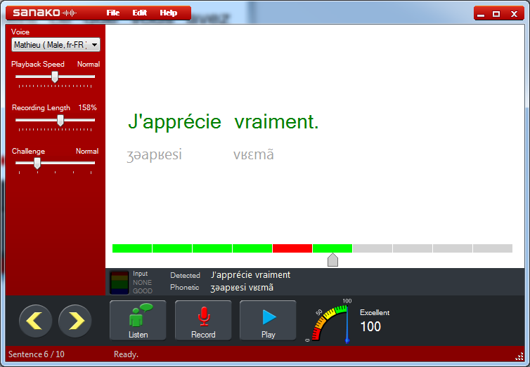 Mit Sanako Pronounce kann sehr einfach 7 Textmaterial in gesprochenen Text umgewandelt werden, um Aussprache und Sprachverständnis zu üben. Pronounce verbindet die neuesten Text-to-Speech-Technologien mit Spracherkennung und stellt somit ein mächtiges Werkzeug zum Sprachen lernen dar.
